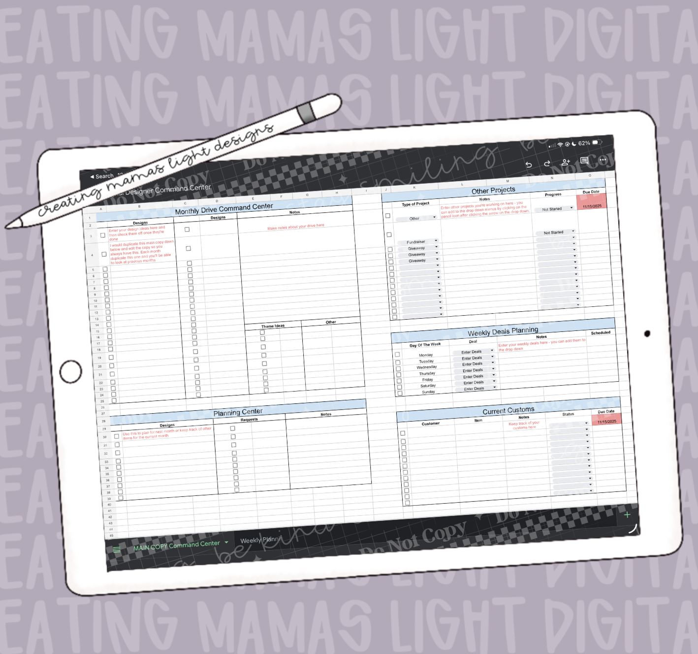The Digital Designer Command Center is more than a spreadsheetāitās your go-to dashboard for running a smooth, creative, and profitable digital design business.